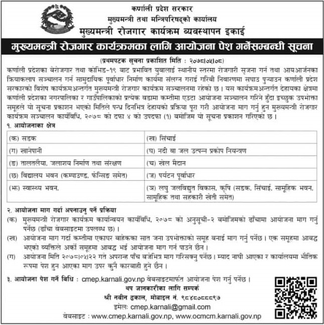 मुख्यमन्त्री रोजगार कार्यक्रमका लागि आयोजना पेश गर्ने सम्बन्धी सूचना |