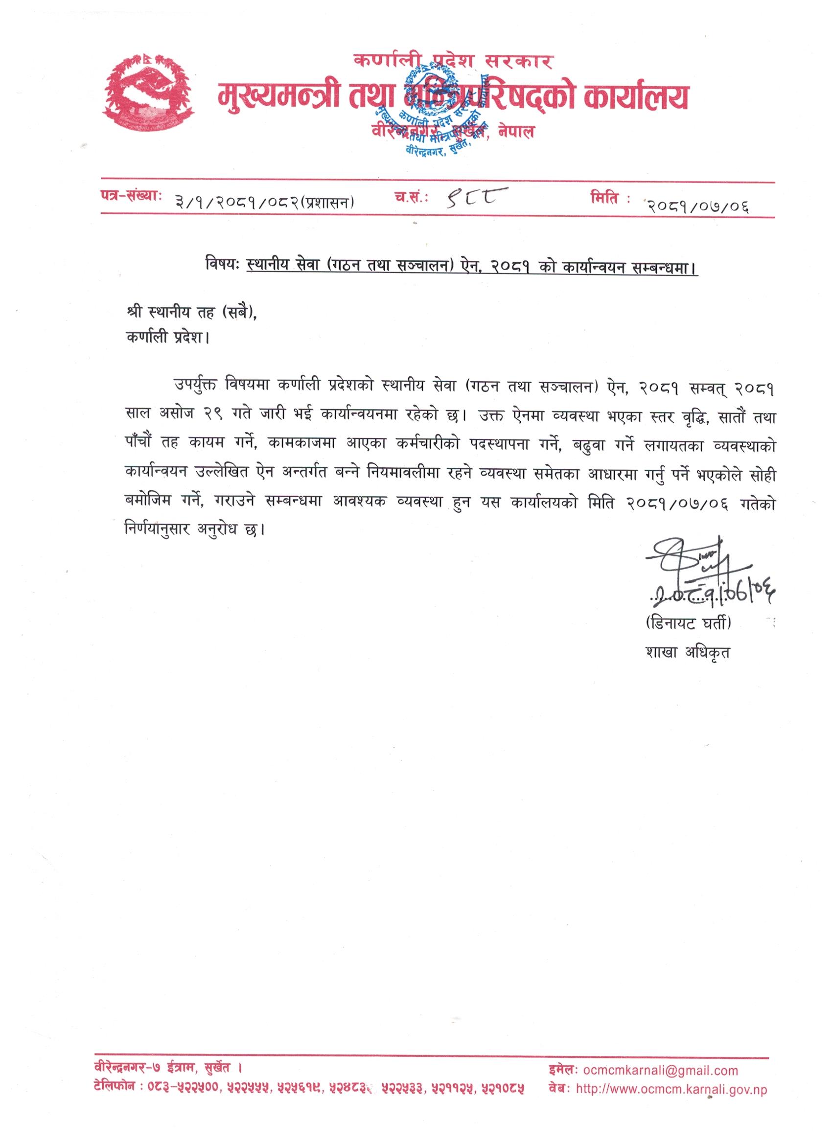 स्थानीय सेवा (गठन तथा सञ्चालन) ऐन, २०८१ को कार्यान्वयन सम्बन्धमा। |