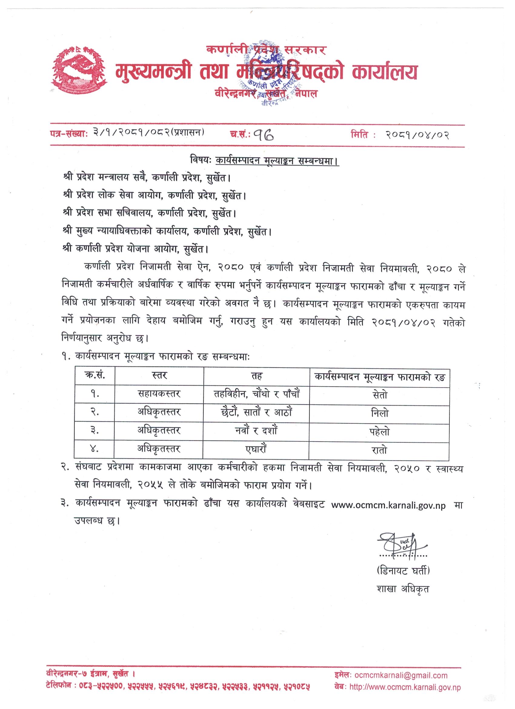 कार्यसम्पादन मुल्याङ्कन सम्बन्धमा |
