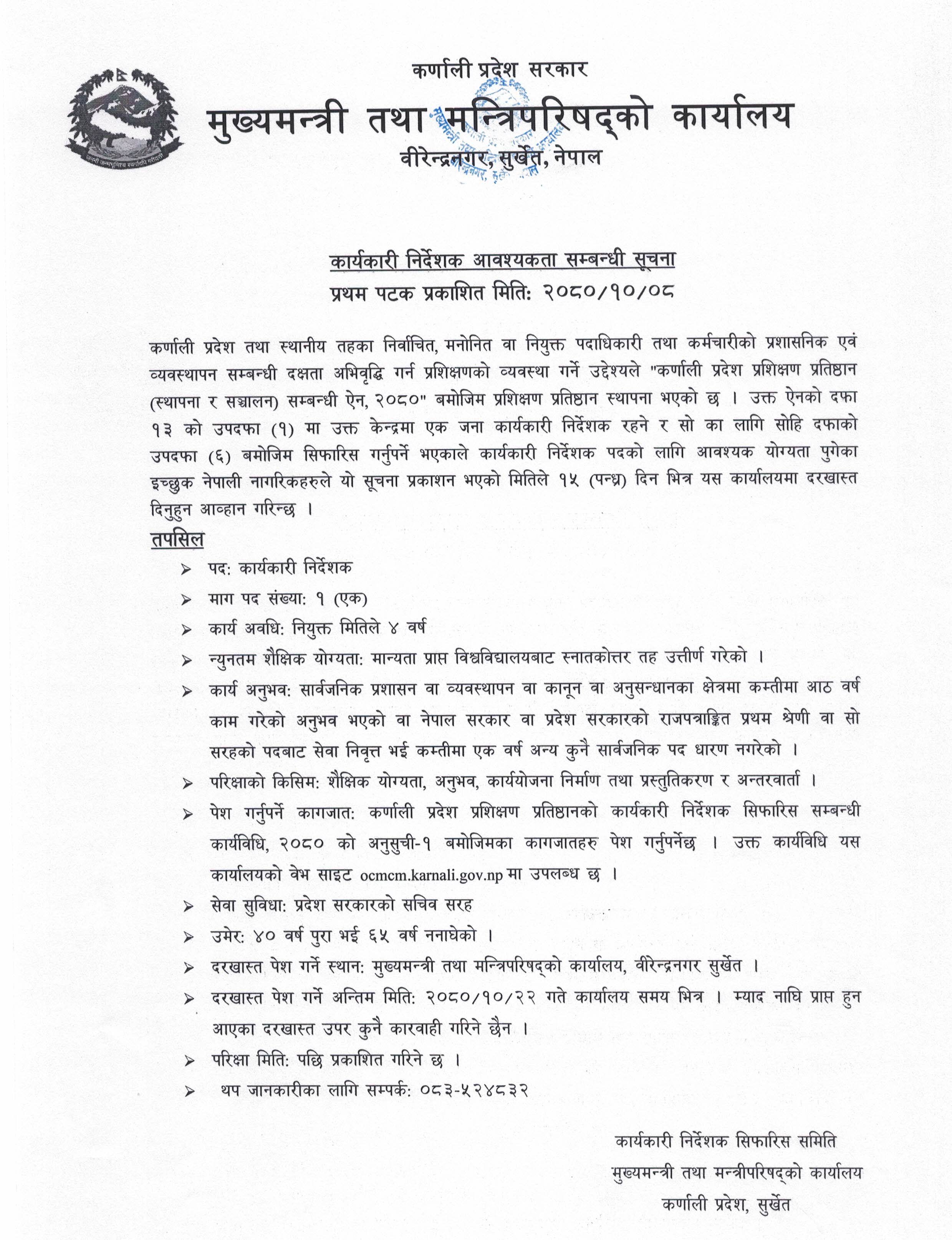 कार्यकारी निर्देशक आवश्यकता सम्बन्धी सूचना |