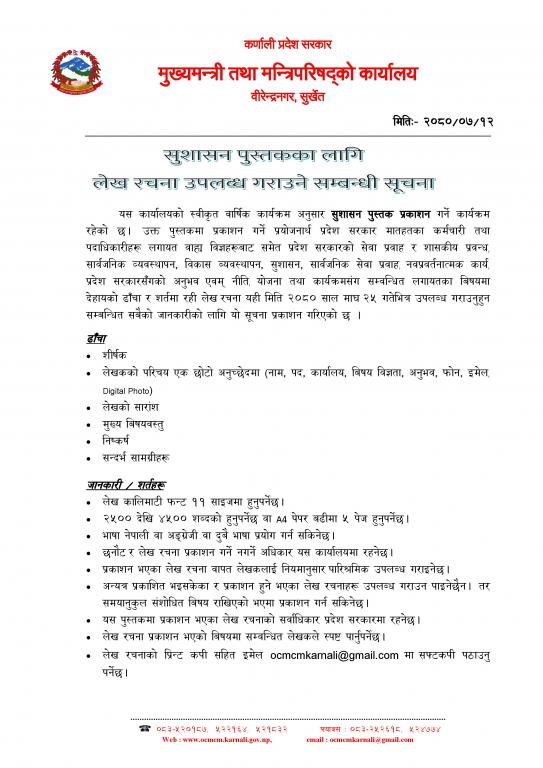 सुशासन पुस्तकका लागि लेख रचना उपलब्ध गराउने सम्बन्धमा |