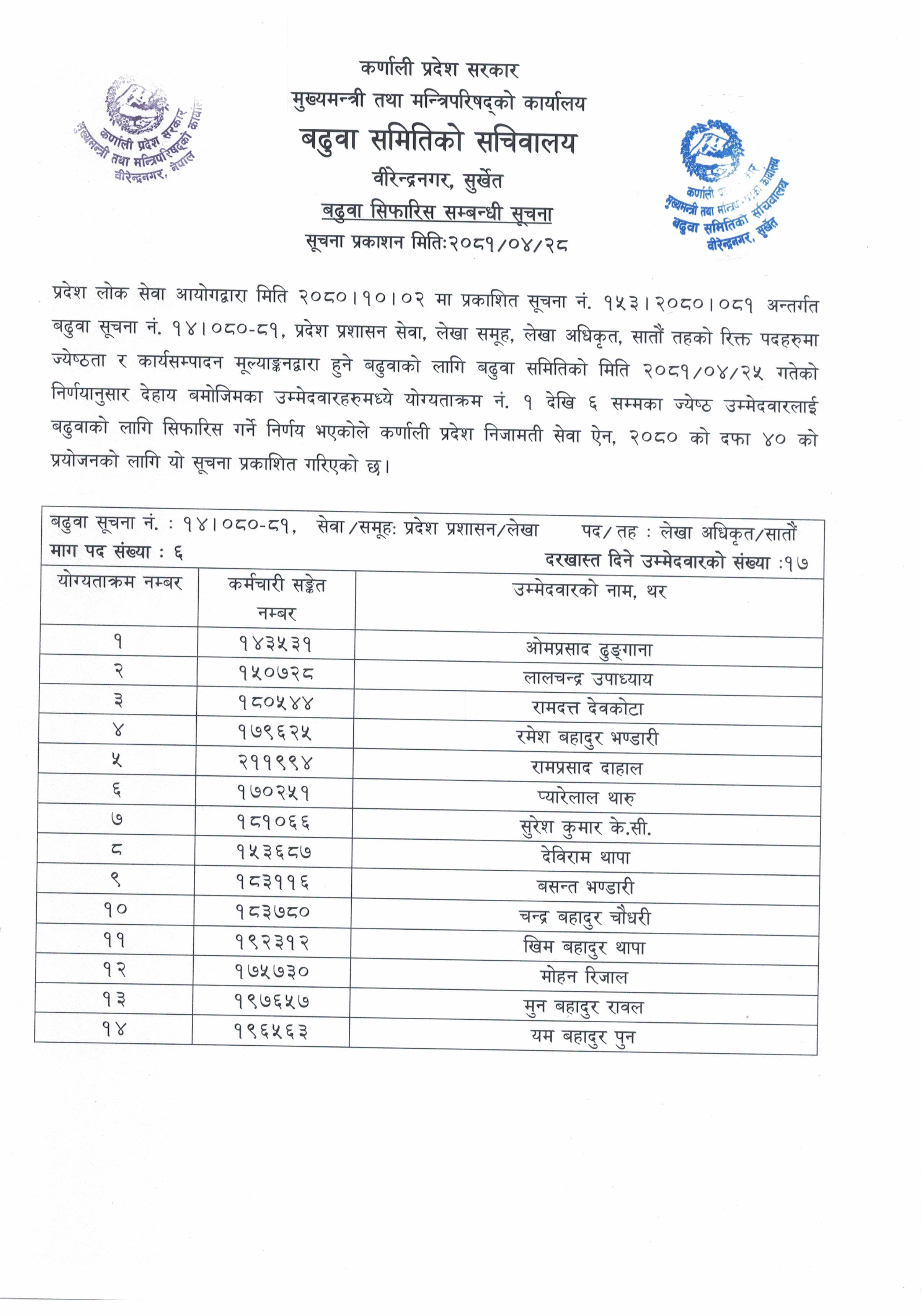 बढुवा सिफारिस सम्बन्धी सूचना(प्रदेश प्रशासन सातौं)