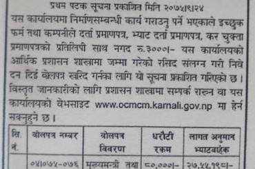 ट्रस सहितको तला निर्माण सम्बन्धी बोलपत्र आह्यवानको सूचना