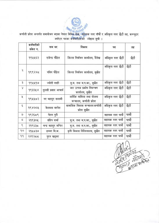 नेपाल विविध सेवा रा.प.अनं प्रथम श्रेणीकाे कर्मचारी समायोजन जेष्ठता सम्बन्धी सूचना