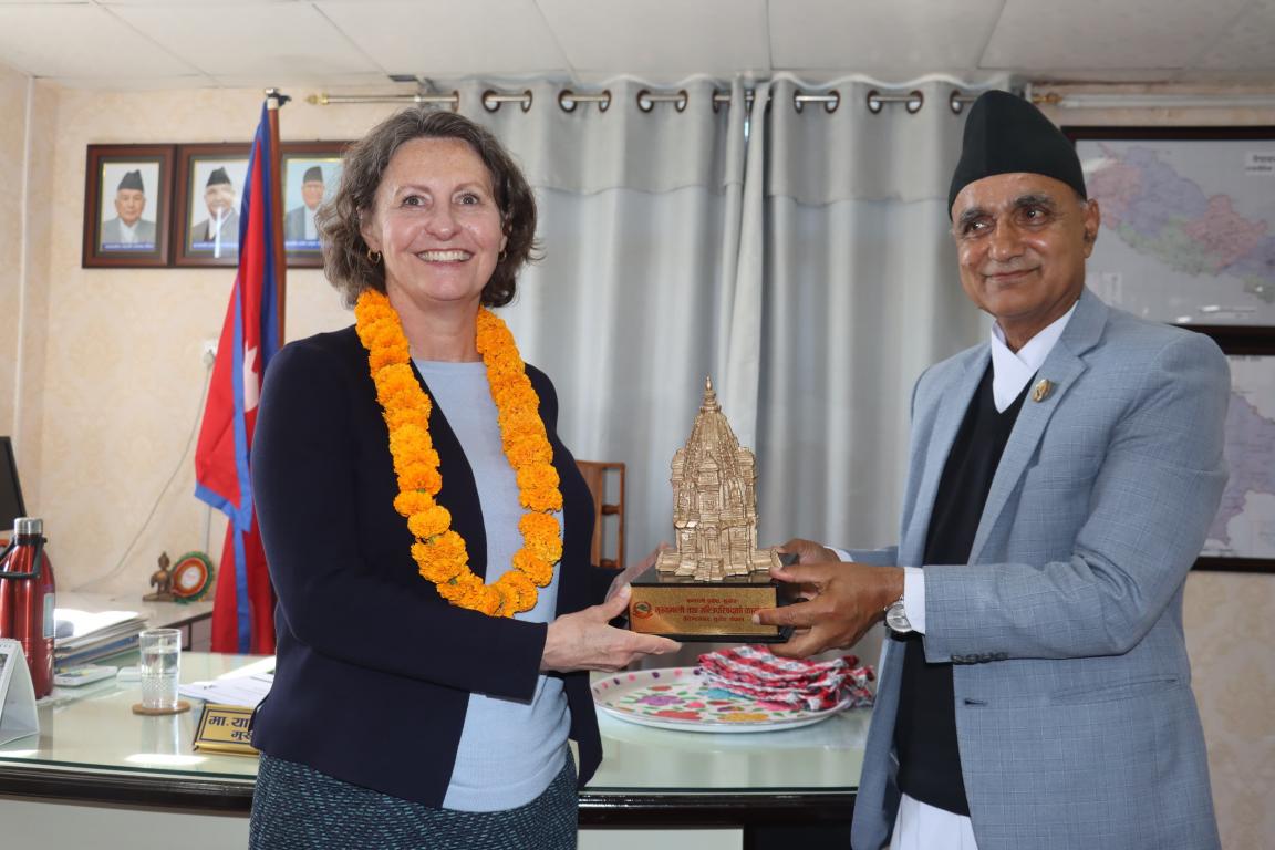 नेपालका लागि अष्ट्रेलियन सरकारका राजदूत लिआन जोनस्टनलाई आफै कार्यकक्षमा स्वागत गर्दै मुख्यमन्त्री माननीय यामलाल कडेल।